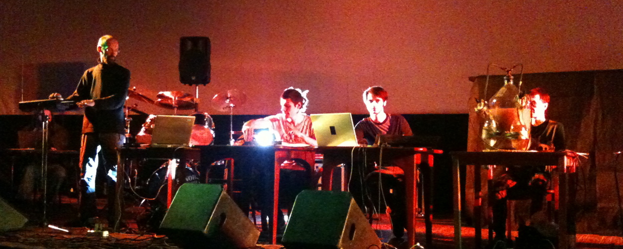 Dark Circuits workshops perform large multi-movement pieces by ensembles using contemporary electronic instrument practices such as circuit bending, no-input mixers, laptops, turntablism, analogue circuitry, network sniffers, live coding and soldering, and more.