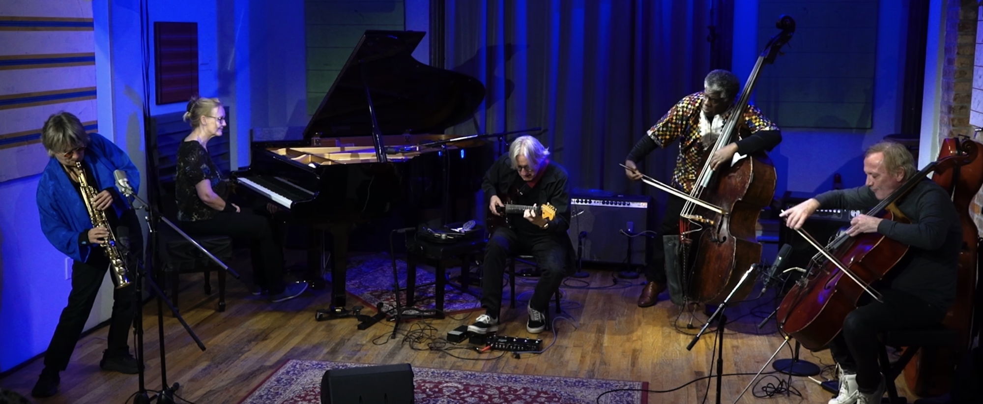 Oct 2023 they revisited this concept of prepared guitar and inside piano. For the second set they invited stellar friends and colleagues soprano saxophonist Jane Ira Bloom, cellist Tomas Ulrich, and bassist Hilliard Greene.